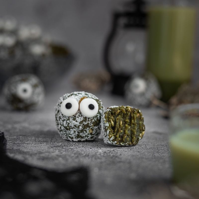 Okusne in zdrave presne kroglice z dodatkom zelenja so odlična rešitev, kadar se želimo posladkati in hkrati poskrbeti za vnos nutrientov. Zeleno barvo kroglicam namreč dajeta superživili: moringa in špinača. A brez skrbi, zelenje ne pušča neprijetnega priokusa – prevlada namreč naravno prisoten sladkor v datljih in prijetno kremast okus indijskih oreščkov. Popolna kombinacija zdravja in sladkanja! Po želji lahko v te kroglice dodate tudi rastlinske proteine in tako še dodatno poskrbite za vnost beljakovin in prijeten okus.